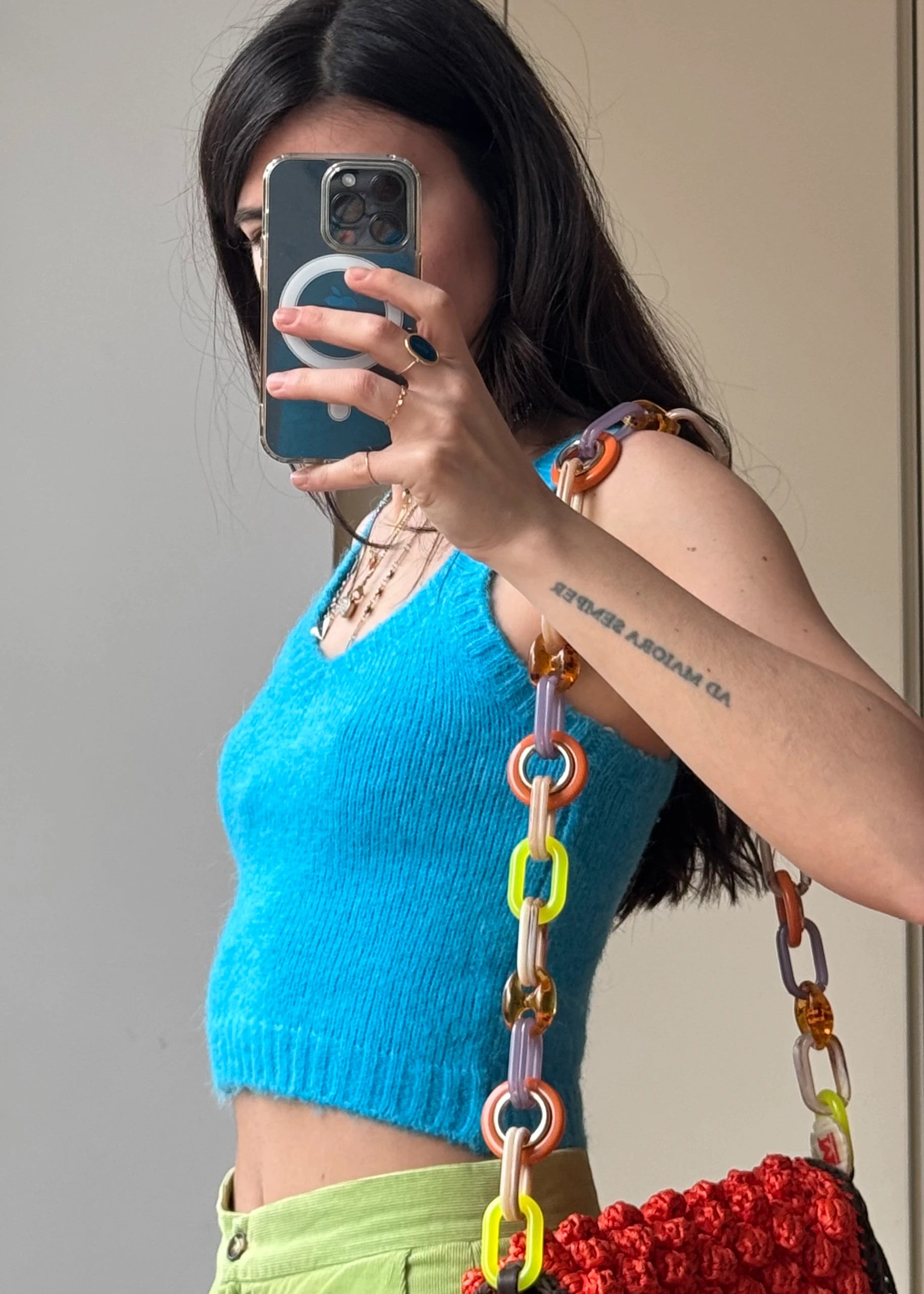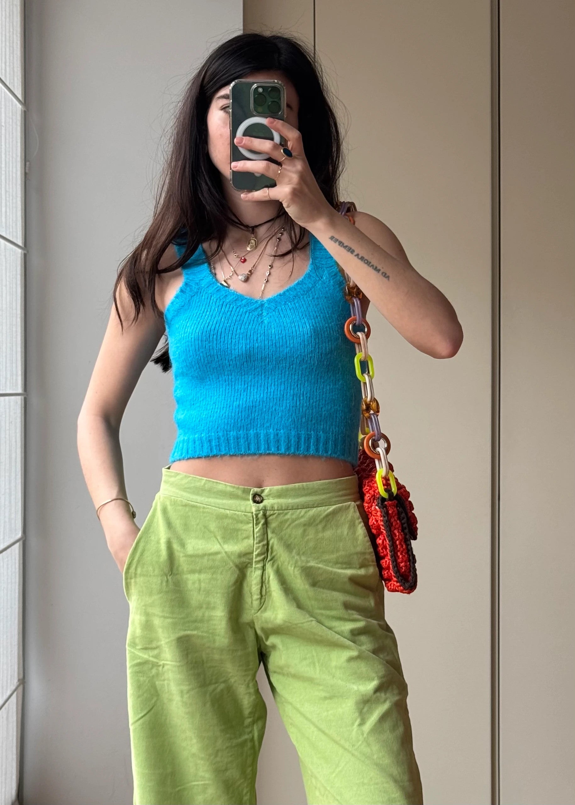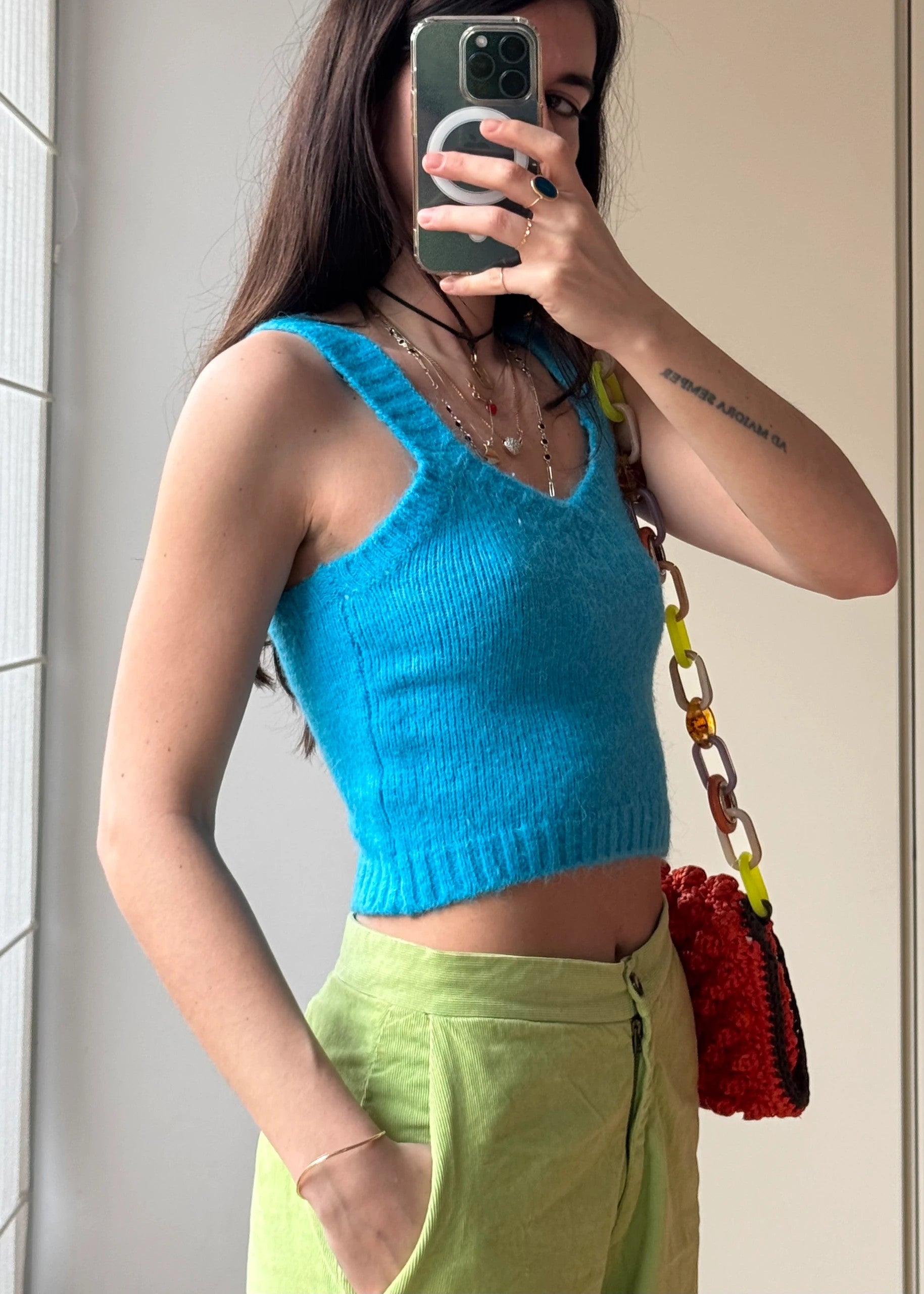 • Design: Linea cropped con scollo a V sul davanti e sul retro.